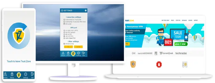 Apart from protecting your connection with AES-256 encryption, Trust.Zone uses perfect forward secrecy to keep your encryption keys dynamic for optimum security. In addition, it uses VPN protocols such as L2TP, IKEv2/IPSec, WireGuard, and OpenVPN.