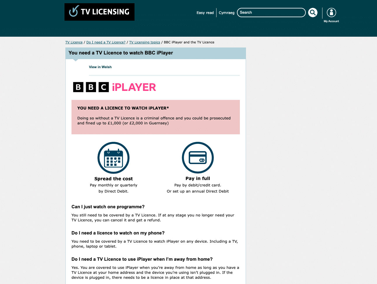2️⃣Pagar una licencia a través de tvlicensing.co.uk