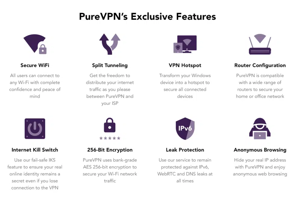 Durante nuestra revisión de PureVPN, notamos algunos beneficios, especialmente que ningún servicio de streaming se queda atrapado en un plan específico. Independientemente del plan de internet de PureVPN que elijas, obtendrás la gama completa de servicios, servidores y características.