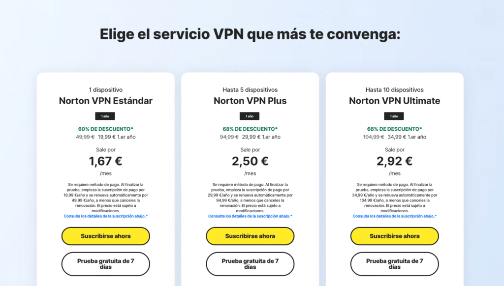Norton ofrece varios niveles de protección para adaptarse a diferentes necesidades y presupuestos. A continuación, detallamos cada plan disponible en España: