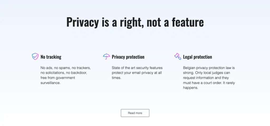 Mailfence also operates outside the jurisdiction of the United States, adhering to stringent European privacy laws. This means that your data isn’t subject to intrusive surveillance or third-party access, providing peace of mind for privacy-conscious users.