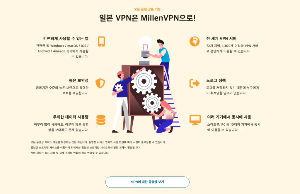 기기 호환성: MillenVPN은 최대 10대의 기기에서 동시 연결을 지원하여, 여러 기기를 사용하는 사용자나 가정에 적합한 다재다능한 옵션입니다.
