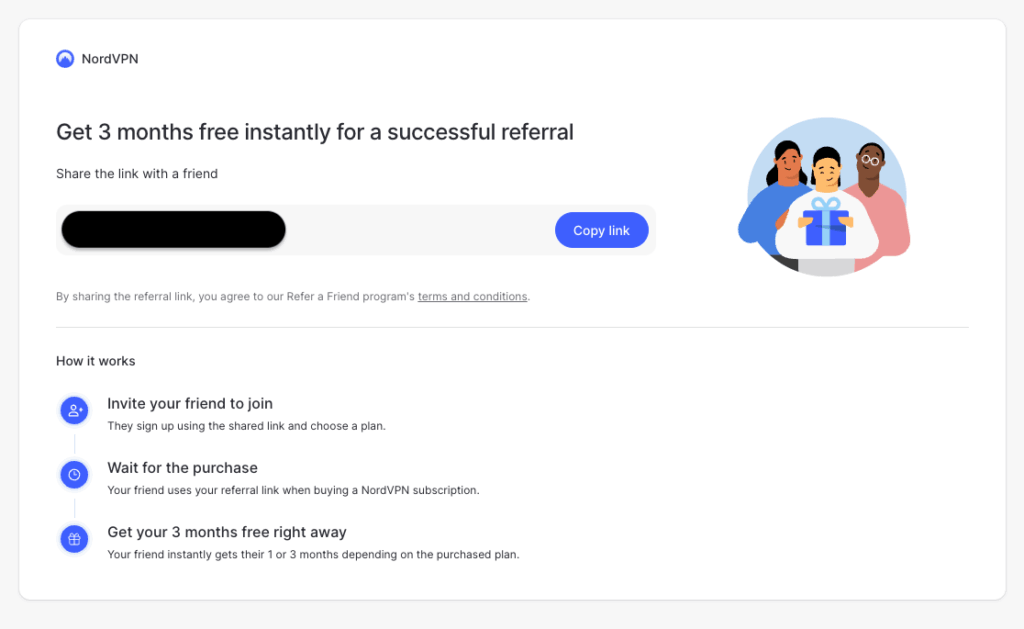 NordVPN’s “Refer a Friend” program offers one of the most generous referral rewards in the VPN industry.