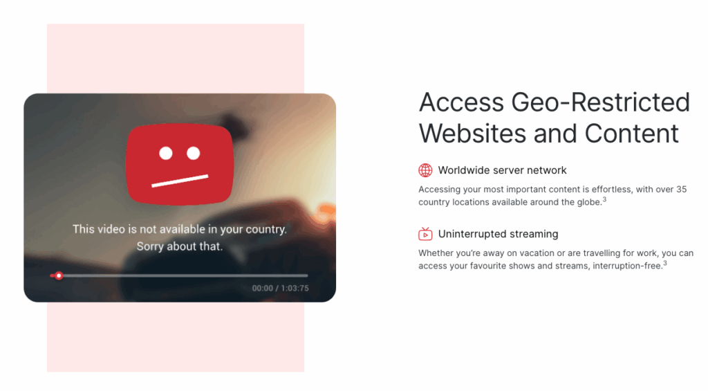 Total VPN’s extensive server network is a major advantage for users looking to bypass geo-restrictions and access a wide range of content from around the globe. With over 1,800 servers in more than 80 countries, users can enjoy a reliable and secure connection almost anywhere. This global reach is perfect for streaming, gaming, and browsing, providing flexibility and freedom in your online activities.