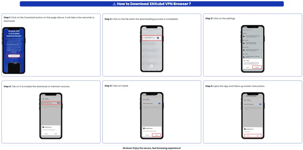 Installing the XNXubd VPN Browser APK is a straightforward process that takes only a few minutes. Users can download the APK directly from the official website, after which they’ll need to allow installations from unknown sources on their device. Once installed, users can launch the app and start browsing securely without further setup.